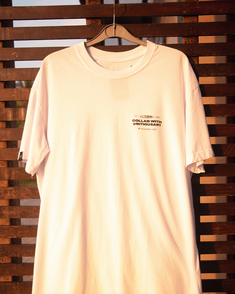 A peça conta com reforços de costura na gola e nos ombros, para melhor estrutura e durabilidade. A estampa é feita com tinta a base d’água para minimização do impacto ambiental e redução do uso de produtos químicos na confecção da peça.